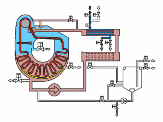 成衣染色机适合小批量、特殊品种的成衣染色,具有灵活、方便、快捷的特点。其原理如下图: